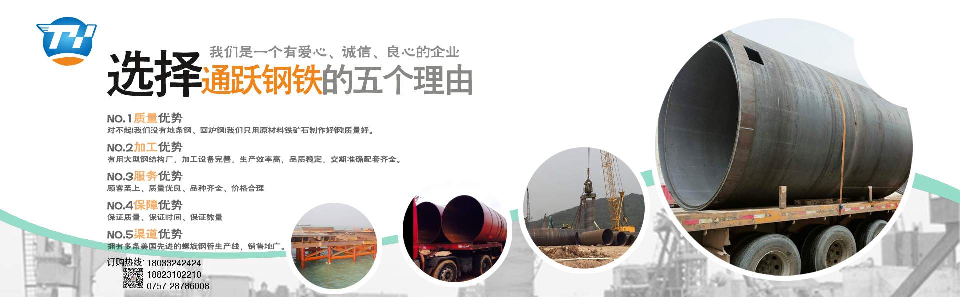 佛山市通躍鋼鐵有限公司 電話180-2228-4448 0757-28786008 擁有多條美國先進(jìn)的螺旋鋼管生產(chǎn)線,生產(chǎn)直徑φ159-φ3620mm(壁厚6mm-20mm)的雙面埋弧螺旋焊鋼管,年生產(chǎn)能力15萬噸。 生產(chǎn)螺旋管 螺旋鋼管 螺旋焊管 規(guī)格厚度6mm-20mm 直徑159mm-3620mm 有多條鋼板卷管機(jī)生產(chǎn)規(guī)格厚度6mm-70mm 直徑400mm-5020mm 螺旋管 螺旋鋼管 鋼護(hù)筒 焊接鋼護(hù)筒 鋼板卷管 丁字焊管 加工格構(gòu)柱 鋼管樁 材質(zhì)Q235B Q345B Q235A 45# 20# Q420D Q390D 錳板 歡迎來電報(bào)價(jià),公司配有大型型材 鋼板倉庫,大量各種規(guī)格現(xiàn)貨H型鋼 槽鋼 角鋼 工字鋼 鋼板,鍍鋅方管 鍍鋅產(chǎn)品 產(chǎn)品可以定尺定長,提供打砂,除銹,上油漆,公司配有防腐加工廠,專業(yè)對鋼管進(jìn)行內(nèi)外壁防腐加工,鋼管外壁主要有三油兩布,五油三布,環(huán)氧煤瀝青及環(huán)氧樹脂漆,各種高分子涂料。鋼管主要有飲用水涂料IPN8710-2B,水泥砂漿及各種環(huán)氧涂料,IPN8710飲用水防 ……了解更多